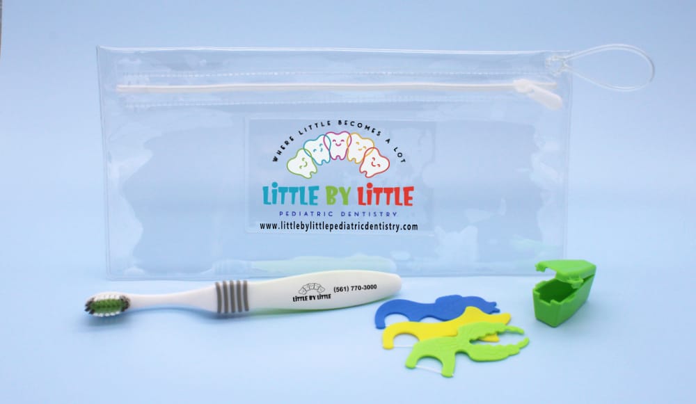Orthodontic Care Kits: Pre-packed with a personalized toothbrush and hygiene items, like floss threaders, wax, mouth mirror, and toothpaste inside a zipper kit bag. These help ortho patients stay on top of their oral hygiene between visits.